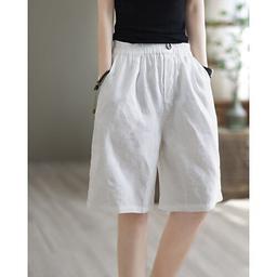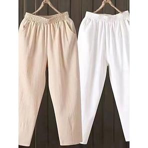 Dam Byxor Trekvartslånga Mode Streetwear Knelängd Naturlig Slät Ficka Elastisk midja Bekväm Semester Gata Aprikos Svart Vit Gul Sommar Normal