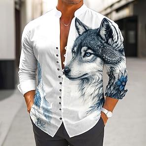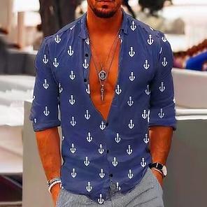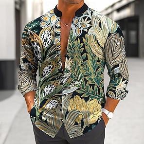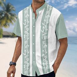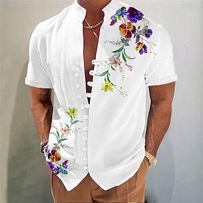 Herr Växter Bambu Skjorta Ståkrageskjorta Kortärmad Mode Casual Semester Helgdag Standkläder Sommar Vår Kraghalsband Bandkrage farfars krage Knappen uppåt 3D-utskrift Linne som skjorta Blå Ljuslila