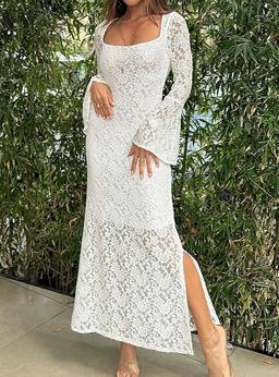 Dam Maxiklänning Vit klänning Svart klänning Spetsklänning Elegant Stylish Sexig Bröllop Semester Fest Normal Långärmad Fyrkantig hals Svart Vit Sommar Vår Höst Vinter