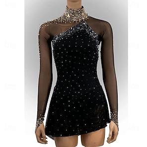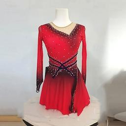Klänningar till konståkning Dam Flickor Skridskor Klänningar Röd Lappverk Maska Hög Elasisitet Träning Tävling Skridskoplagg Klassisk Kristall / Strass Stenar Långärmad Skridskoåkning Konståkning