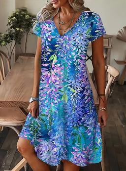 Dam Mini klänning Stickad klänning Vardagsklänning T shirtklänning Solklänning Semester Ledigt Strandstil Normal Blommig Grafisk Kortärmad V-hals Svart Vit Blå Sommar Vår