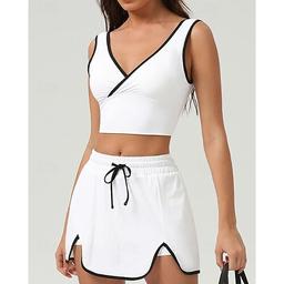 Dam Lappverk Tenniskjolar med shorts Tennistopp 1set Ärmlös Snörning Kontrastbindning Andningsfunktion Tennis Golf Pickleball V-hals Vit Rosa Mörk Marin Tenniskläder