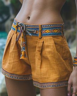 Dam Shorts Byxor Mode Etnisk Kort Naturlig Blomma Ficka Tryck Elastisk dragsko-design Bekväm Utomhus Gata Utekväll Mörkgul Sommar Normal