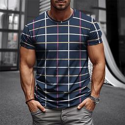 Herr T-shirt Henleytröja T-shirts Kortärmad tröja Kortärmad Rund halsringning Sommar Pläd / Rutig Mode Designer Grundläggande Checkmönstrat Semester Gata Utekväll Mörk marin Blåvit Djupblå Topp