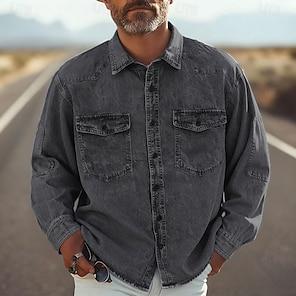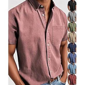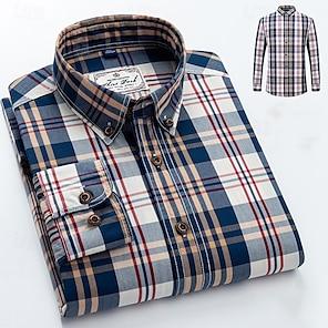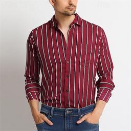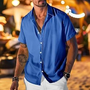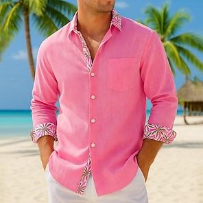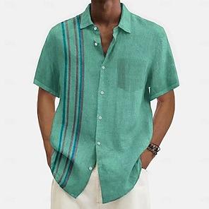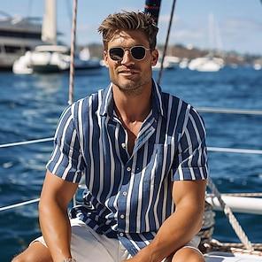Herr Skjorta Sommarskjorta Casual skjorta Strandskjorta Knapp upp skjorta Svart Rubinrött Brun Mörkblå Svart+vit Långärmad Rand Kavajslag Semester Hawaiisk Ficka Kläder Polyester Mode Ledigt Bekväm