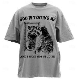 Herrars humoristiska grafiska t-shirt 'Gud testar mig och jag har inte studerat' tvättbjörnsdesign kortärmad livsstils-t-shirt