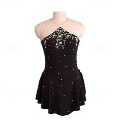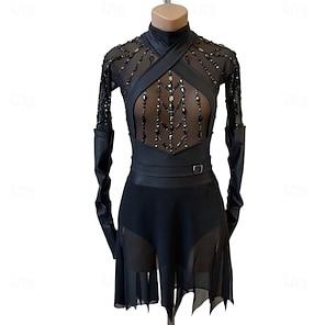 Klänningar till konståkning Dam Flickor Skridskor Klänningar Svart Lappverk Tummen Maska Elastan Elastisk Träning Professionella Tävling Skridskoplagg Håller värmen Kristall / Strass Stenar Långärmad