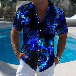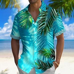 Herr Flamingo Kokosnötsträd Tropiska växter Skjorta Hawaii skjorta Knapp upp skjorta Kortärmad Hawaiisk Tillflykt Semester Helgdag Standkläder Sommar Vår Nedvikt 3D-utskrift krage skjortor Blå