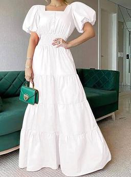 Dam Långklänning Maxiklänning Vit klänning Sommarklänning Boho-klänning Elegant Puffärm Dagligen Sommarklänning Lös passning Slät Ren färg Kortärmad Fyrkantig hals Svart Vit Orange Sommar