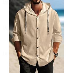 Herr Skjorta Sommarskjorta Casual skjorta Strandskjorta Knapp upp skjorta Svart Vit Mörk marin Brun Khaki grön Långärmad Slät Huva Helgdag Ledigt / vardag Button-Down Kläder Polyester Mode Ledigt