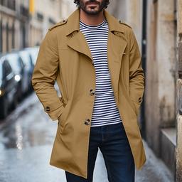 Herr Trenchcoat Karnival Utomhus Vår Höst Vinter Bomull Ytterkläder Kläder Elegant Vintage icke-tryck Ensfärgat Ficka Vik-över krage