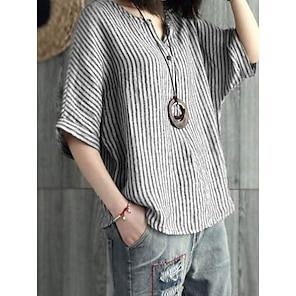Dam Semester Mode Skjorta Linneinspirerade set Tvådelade set Beach Shorts Säckiga Shorts Kortärmad Tröjkrage Ensfärgat Snörning Dagliga kläder Datum Rodnande Rosa Grön Grå Sommar Normal
