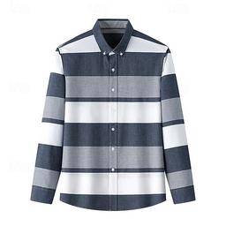 Herr Oxford skjorta Ljus kaki Ljusgrå Mörkgrå Blå / Vit Långärmad Färgblock Knapp ner krage Skola Bröllop Färgblock Kläder Neutral Mode Dagligen