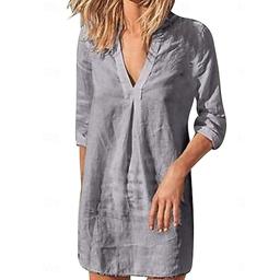 Kvinnors mini klänning shift klänning linne avslappnad daglig vanlig passform grafisk långärmad V-hals svart vit vin grå sommar