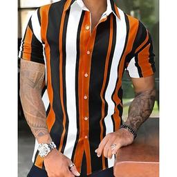 Herr Skjorta Sommarskjorta Casual skjorta Strandskjorta Knapp upp skjorta Ljusgul Svart Gul Rubinrött Kortärmad Tryck Kavajslag Semester Hawaiisk Kläder Polyester Mode Ledigt Bekväm