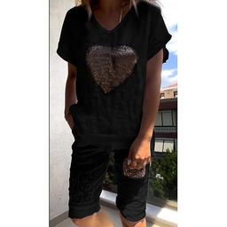 Dam EU / US-storlek Linneinspirerade set Tvådelade set Bolero Top Halvlång ärm V-hals Hjärta Lappverk Utekväll Ledigt / vardag Svart Vit Rodnande Rosa Sommar Normal