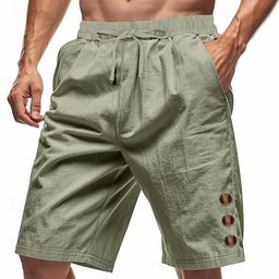 Herr Shorts Linne Shorts Sommarshorts Beach Shorts Snörning Elastisk midja Sidoknapp Slät Komfort Andningsfunktion Knelängd Utomhus Ledigt Dagligen Mode Klassisk Stil 다크 카키 Ljus kaki