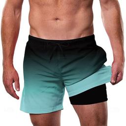 Herr Gradientfärg Fodrade shorts 2 i 1 simshorts Badshorts Medium Midja Hawaiisk Semester Helgdag Standkläder Sidfickor Med kompressionsfoder Elastisk dragsko i midjan Designer Kläder