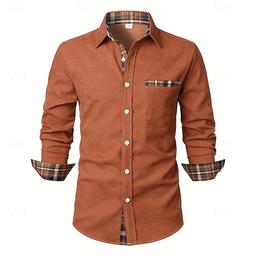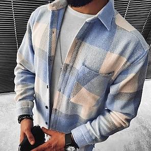 Herr Skjorta Manchesterskjorta Övertröja Rutig Utomhus Gata Svart Marinblå Brun Grön Långärmad Krage Vinter Vår & Höst Kläder