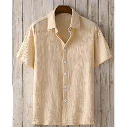 Herr Skjorta Sommarskjorta Casual skjorta Strandskjorta Knapp upp skjorta Aprikos Kortärmad Slät Tröjkrage Semester Hawaiisk Kläder Polyester Mode Ledigt Bekväm