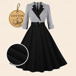 Denna retro vintage 1950-tals Rockabilly midi cocktailklänning ser ut som den perfekta outfiten att ha på sig på vilken fest som helst, och till och med citrondesignmönstret på den får den att se riktigt somrig ut.