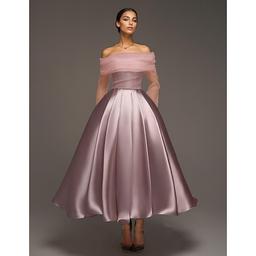 Balklänning A-linje Ankellång Cocktailklänningar Festklänningar Elegant Vintage Långärmad Över axeln Bröllop Formell Avtagbar Satäng med Sjal