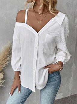 Kvinnors skjorta knappad blus enfärgad stilren avslappnad lång ärm skjorta knappad blus krage regelbundna toppar dagliga knappar ficka svart vit grön aprikos sommar