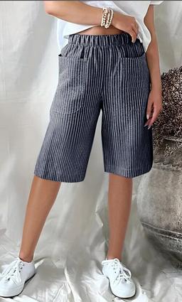 Dam Byxor Trekvartslånga Streetwear Ledigt Knelängd Naturlig Randig Ficka Mateial som andas Bekväm Microelastisk Ledigt Dagliga kläder Marin Ljus himmelblå Rodnande Rosa Sommar Normal