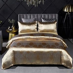 3 st påslakansset i satin siden täcke med 1 påslakan eller täcke, 2 örngott för dubbel/drottning/kung (1 örngott för tvilling/singel), lyxig stil, torrt och andningsbart tyg