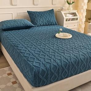 Sammet Måttsydd Lakan Lyxigt Supermjukt Mysigt Stickad Lämplig för Höst Vinter och Vår Enfärgad