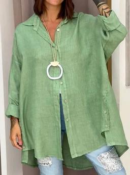 Dam Skjorta Ensfärgat Slät Grundläggande Ledigt Långärmad Tröjkrage Vanliga toppar Dagligen Knappar Svart Vit Rodnande Rosa Grön Sommar