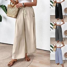 Kvinnors vida chinos baggy byxor mode grundläggande avslappnad hel längd hög midja enfärgad ficka elastisk midjeband bekväma mjuka bekväma mikroelastiska utomhus gata svart aprikos ljusblå grå