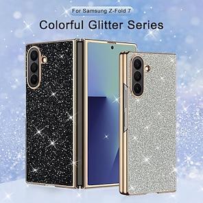 telefon fodral Till Samsung Galaxy Z-vikning 7 Z Vik 6 Z Fold 5 Z Fold 4 Skal Bling Glitter Shiny Stötsäker PC PU läder