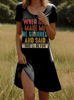 Dam Mini klänning T shirtklänning A linjeklänning Sommarklänning Semester Ledigt Dagligen Normal Grafisk Bokstav Kortärmad Rund hals Svart Vit Rodnande Rosa Blå Sommar Vår