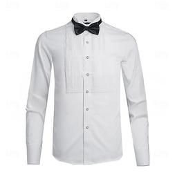 Mäns vintage festskjorta hemkomst modeformell sommar standardpassform långärmad enfärgad polyester vit