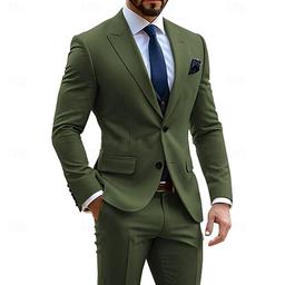 Mäns bröllopsbal festkostymer militärgrön beige modeformella sommar enfärgade skräddarsydda passning 2-delat enkelknäppnings tvåknappar