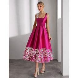 A-linje Ankellång Cocktailklänningar Festklänningar Elegant Kort och lång Ärmlös Båthals Formell Bröllopsgäst Ficka Satäng med Blomtryck Broderad Ficka
