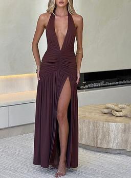 Sjöstjärna Trumpet Party Klänningar Elegant Klänning Bröllop Bröllopsgäst Golvlång Ärmlös Halter Neck Imiterad Silkig Rygglös med Slits