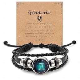 Flerlagers Konstellations Zodiac Läderarmband Handgjort Vävda Zodiac Tecken Wrap Armband Handleder för Kvinnor Män Smycken Födelsedag Gåva Julklapp