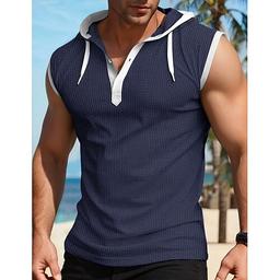 Herr Våffelskjorta Linne Undertröjor Ärmlös tröja Ärmlös Huva Sommar Slät Mode Designer Muskel Utomhus Utekväll Gym Svart Vit Rubinrött Topp t-shirt för män