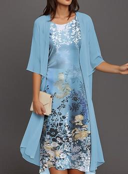 Kvinnors Examens Klänning Midi Klänning Klänningsset Sommarklänning Fest Cocktail Blommig Tryck Halv Ärmar Rund Hals Bröllop Gäst Daglig Rosa Blå Lila Sommar Vår Lätt Passform