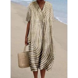 Dam Midiklänning Solklänning A linjeklänning Semester Ledigt Strandstil Utekväll Lös passning Grafisk Geometrisk Kortärmad V-hals Rödvin Orange Naturvit Mörkgrå Sommar