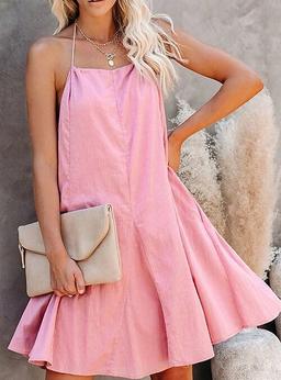 Dam Mini klänning Linneinspirerade klänningar Klänning i bomullslinne Sommarklänning Rosa klänning Mode Varm Modern Dagligen Lös passning Slät Ren färg Ärmlös Halterneck kall axel Snörning i halsen