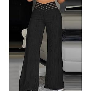 Kvinnors Bomull Linne Baggy Byxor Enfärgade Chinos Grundläggande Avslappnad Hel Längd Hög Midja Medel Midja Plain Fickor Bekväm Utomhus Mikro-elastisk Semester Gågata Daglig Armégrön Grå Svart Röd