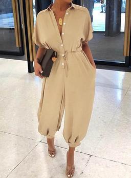 Kvinnors Jumpsuit Aktiv Leopard Halvärmad Skjortkrage Hög Midja Semester Daglig Regular Fit Svart Brun Khaki Sommar
