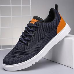 Röda herrskor i meshstickning med halkfri yttersula – lätta, andningsbara sportskor för promenader, gymresor och vardagskomfort