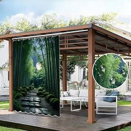 Vattentät utomhusgardin för integritet rullgardin för uteplats pergolagardiner med ögla 3D landskap skog för gazebo balkong veranda fest 1 panel