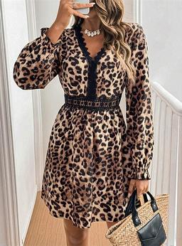 Dam Långklänning Maxiklänning Spetsklänning Jumperklänning Vardagsklänning Elegant Stylish Ledigt Semester Fest Dagligen Normal Leopard Långärmad V-hals Leopard Vår Höst