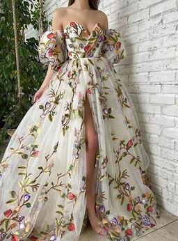 A-linje Partyklenningar Elegant Klänning Bröllop Bröllop Gäst Fälla/Borsta Tåg Kort Ärme Ärmlös Tyll Rygglös med Broderi Klänning