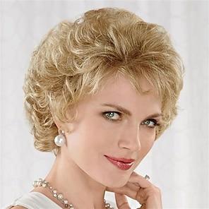 Korta fluffiga blonda peruker för kvinnor naturligt utseende syntetiskt kort lockigt cosplay-peruk